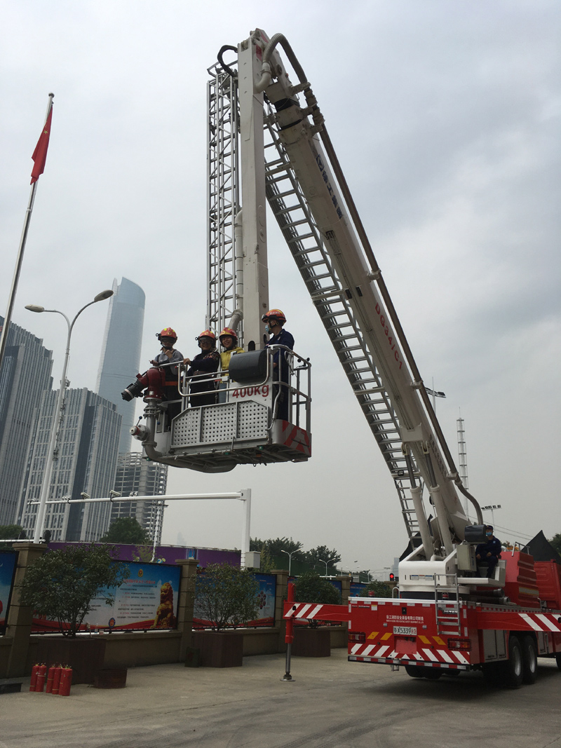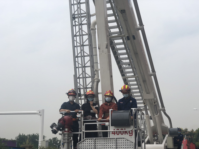 消防指战员为大家现场展示了各种类型的消防车辆,包括大力神重型消防车、34米云梯车、地震式抢险救援车、灭火机器人、奔驰城市消防车、突击攀登车等现代主流消防车辆。贸促会会员代表在消防员指导下学习操作消防机器人,分批体验了云梯车、了解了消防队员在各种危急情况下如何借助这些车辆和装备完成了救援任务,保护人民的生命财产。