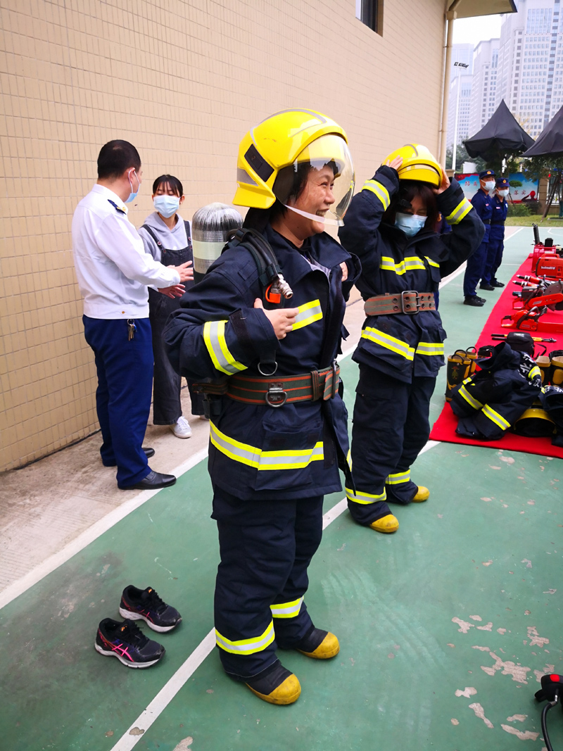 为体验消防员的工作实际,会员代表现场穿着灭火服、在消防指挥员指导下进行两盘水带连接操作,使用干粉灭火器灭油盆火等,深刻体会到了消防员工作的辛苦和不易。会员一行还参观了消防员生活场所,了解了消防员内务摆放秩序。