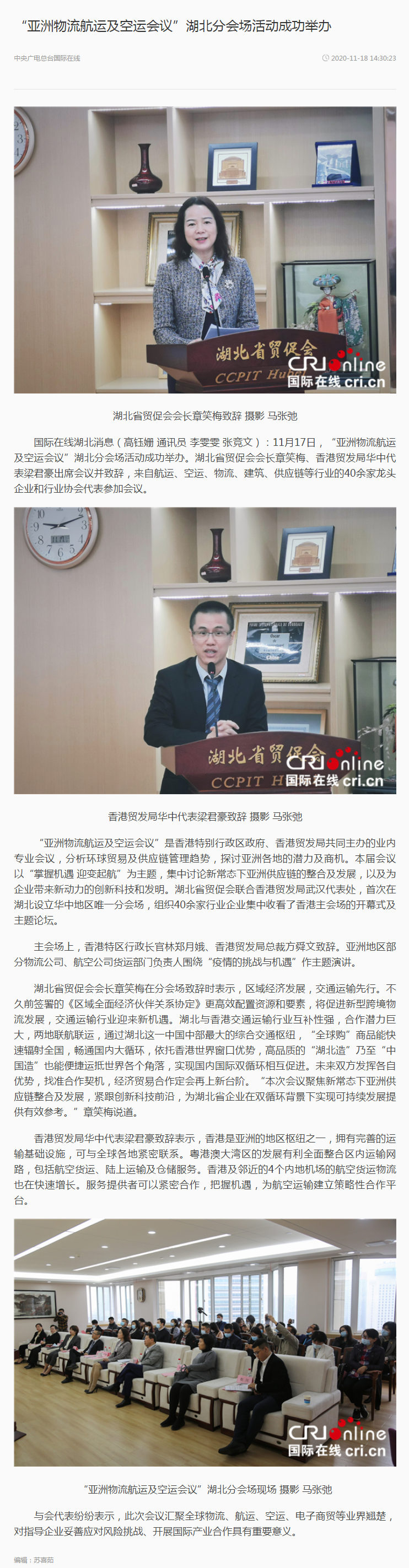 中央广电总台国际在线:“亚洲物流航运及空运会议”湖北分会场活动成功举办