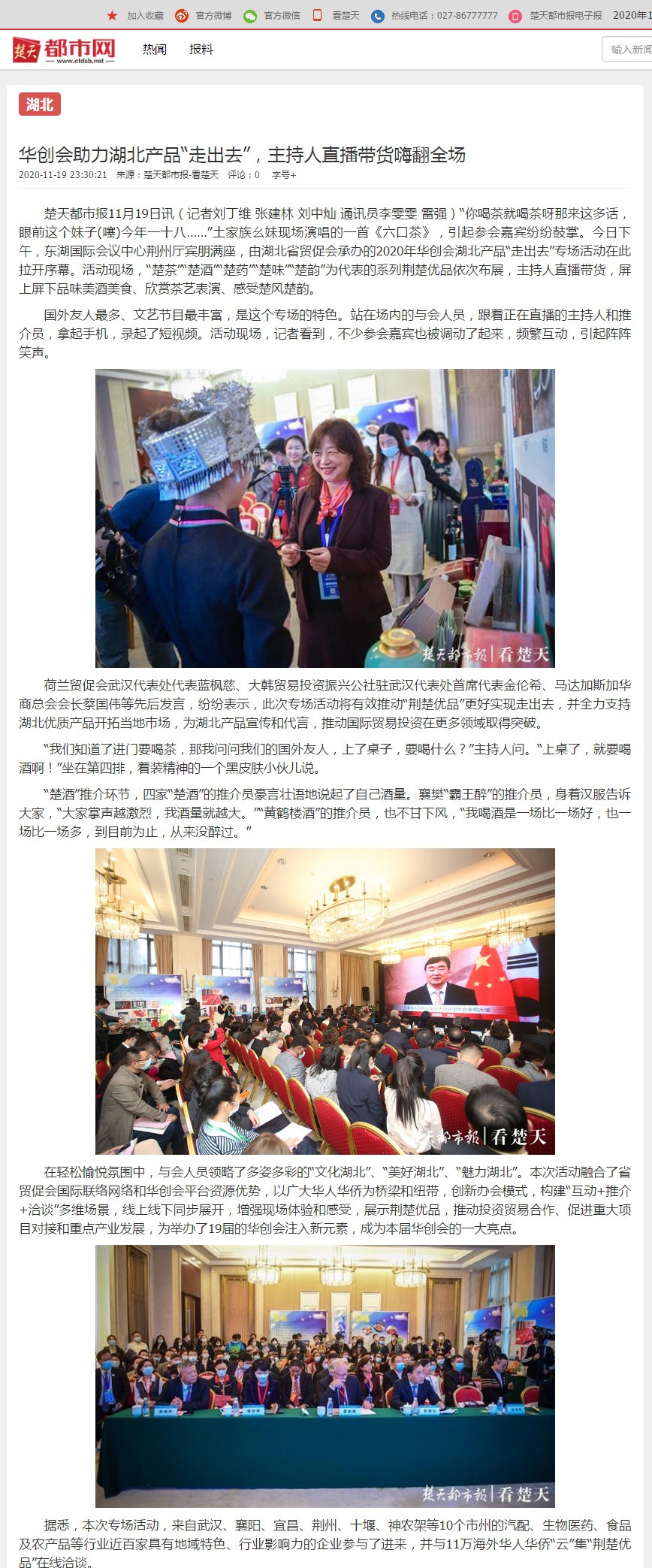 楚天都市报:华创会助力湖北产品“走出去”,主持人直播带货嗨翻全场