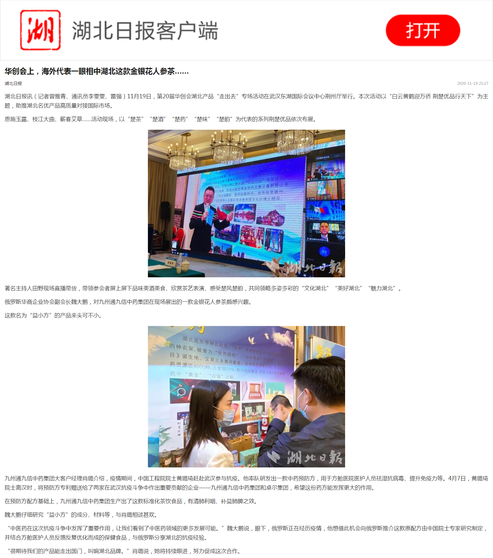 湖北日报:华创会上,海外代表一眼相中湖北这款金银花人参茶……