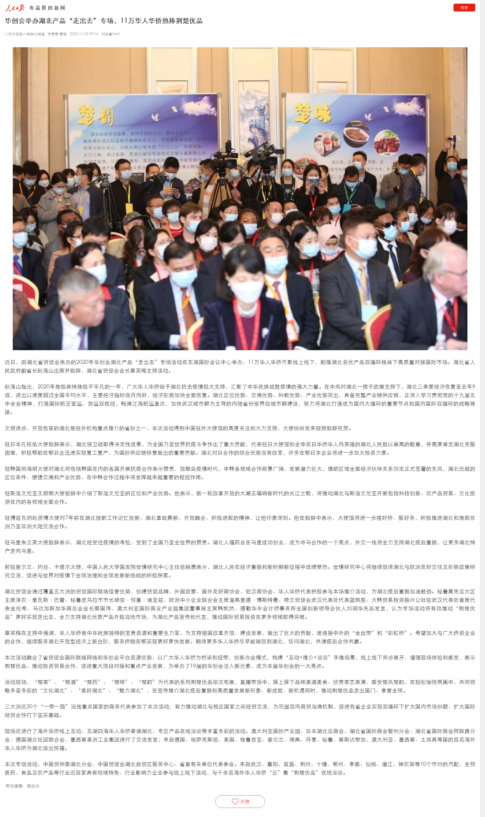人民日报:华创会举办湖北产品“走出去”专场,11万华人华侨热捧荆楚优品
