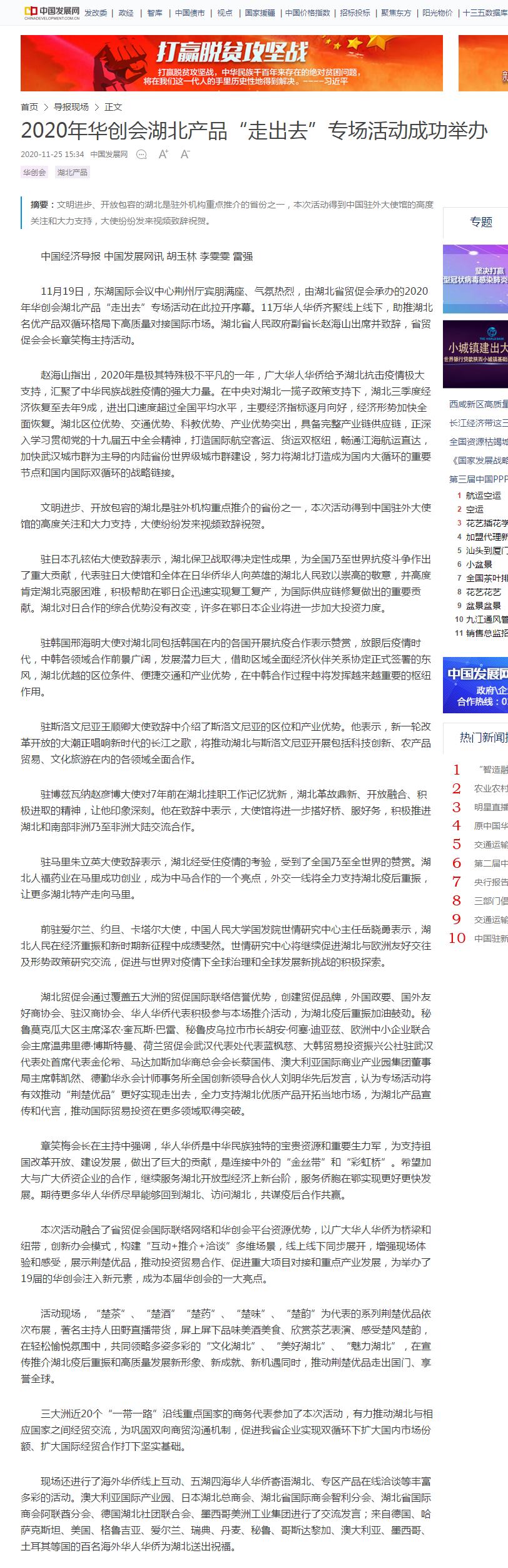 中国经济导报:2020年华创会湖北产品“走出去”专场活动成功举办