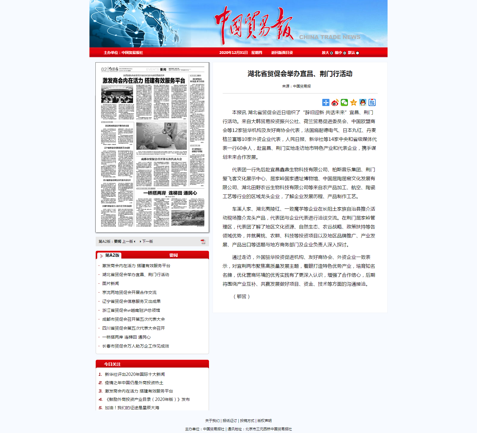 中国贸易报:湖北省贸促会举办宜昌、荆门行活动