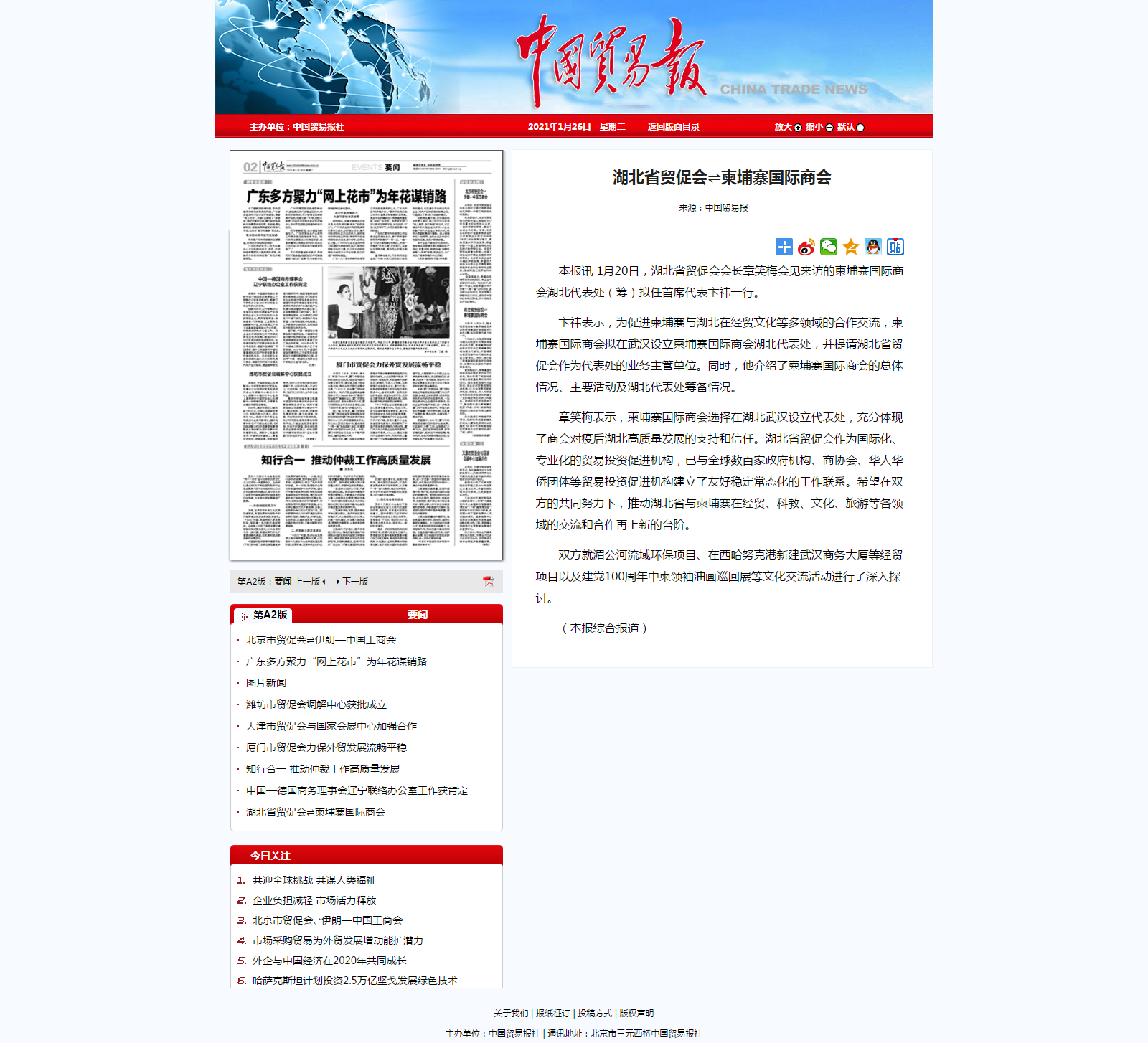中国贸易报:湖北省贸促会⇌柬埔寨电竞赛事竞猜平台推荐