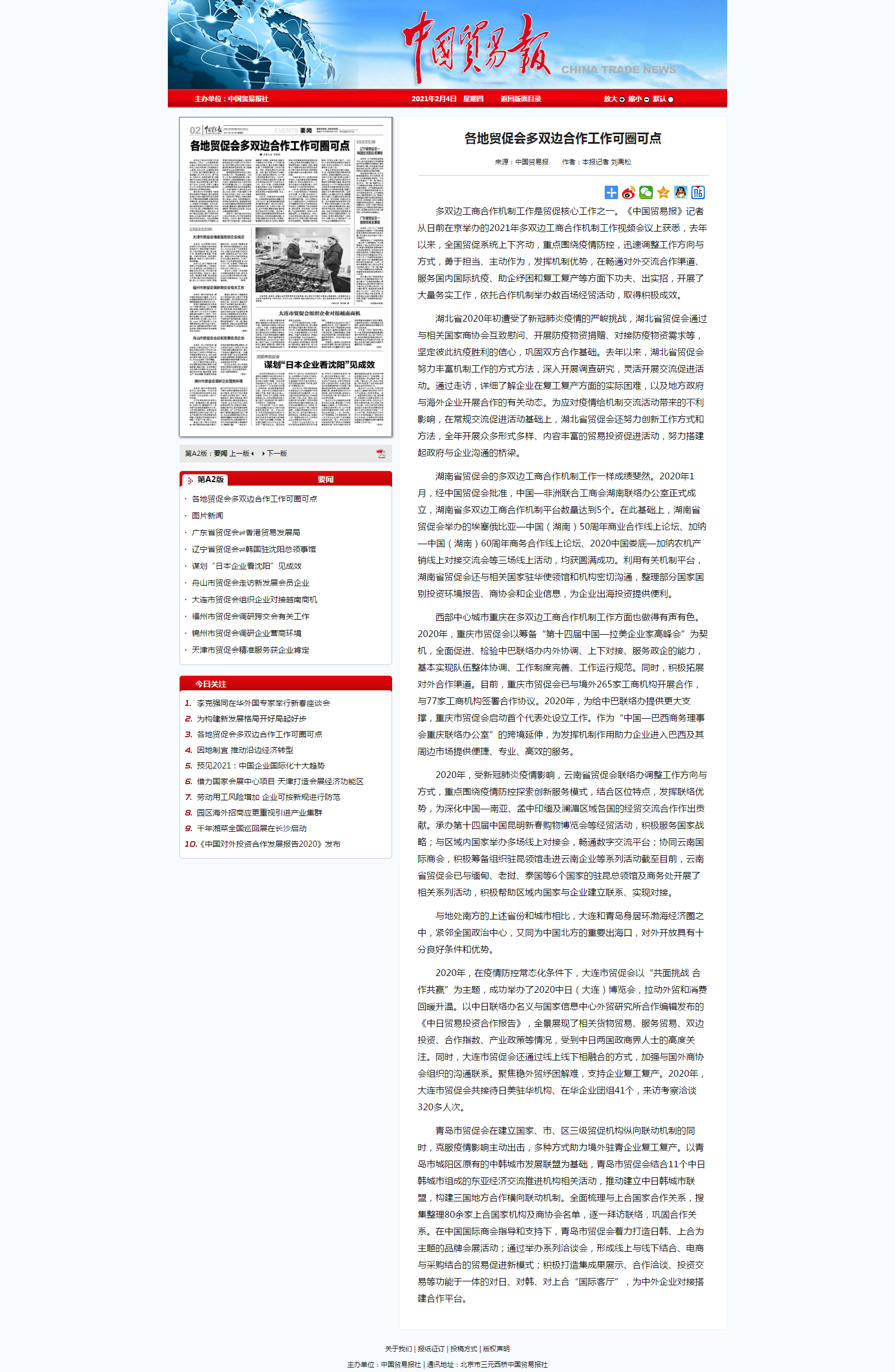 中国贸易报:各地贸促会多双边合作工作可圈可点