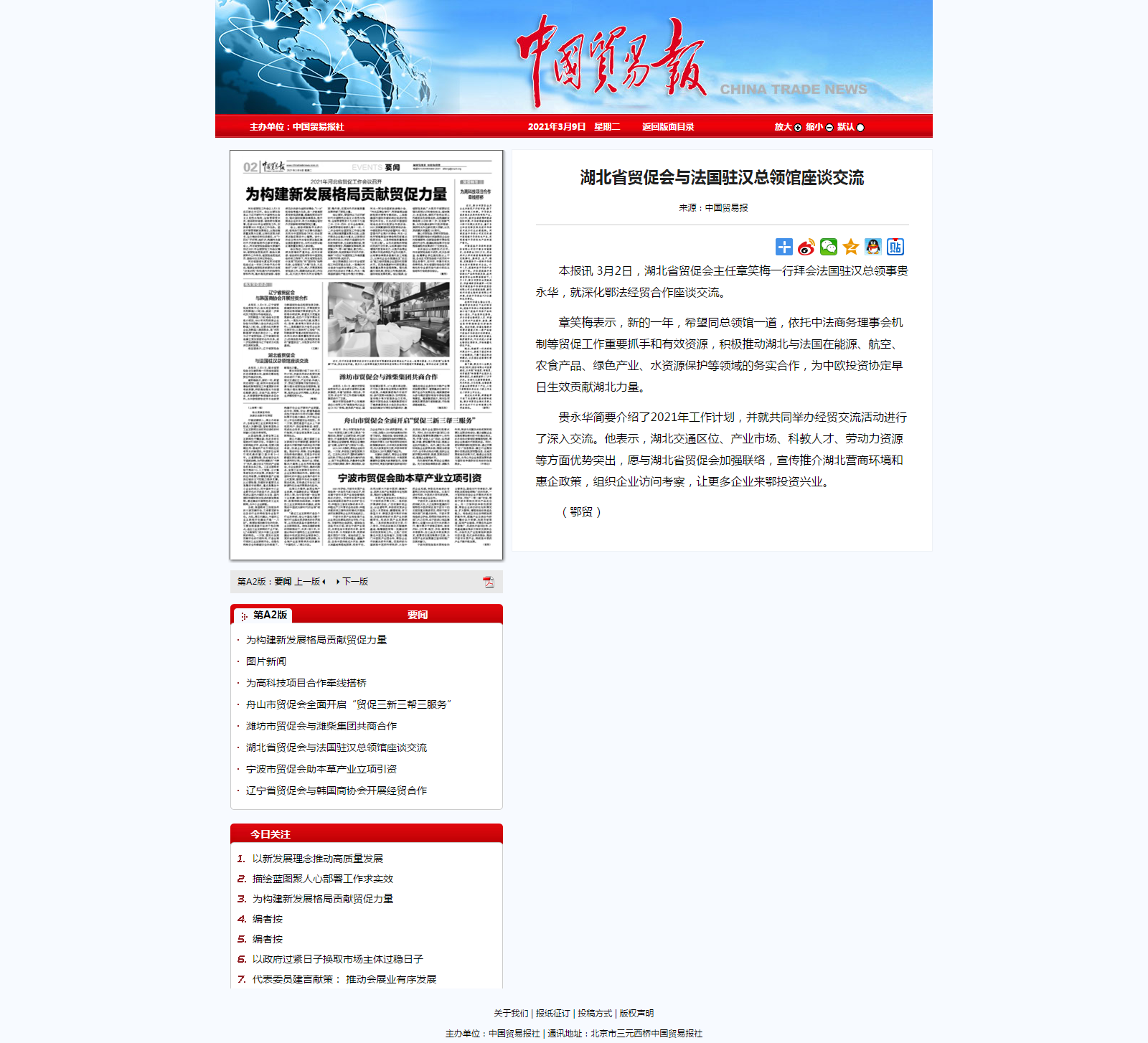 中国贸易报:湖北省贸促会与法国驻汉总领馆座谈交流