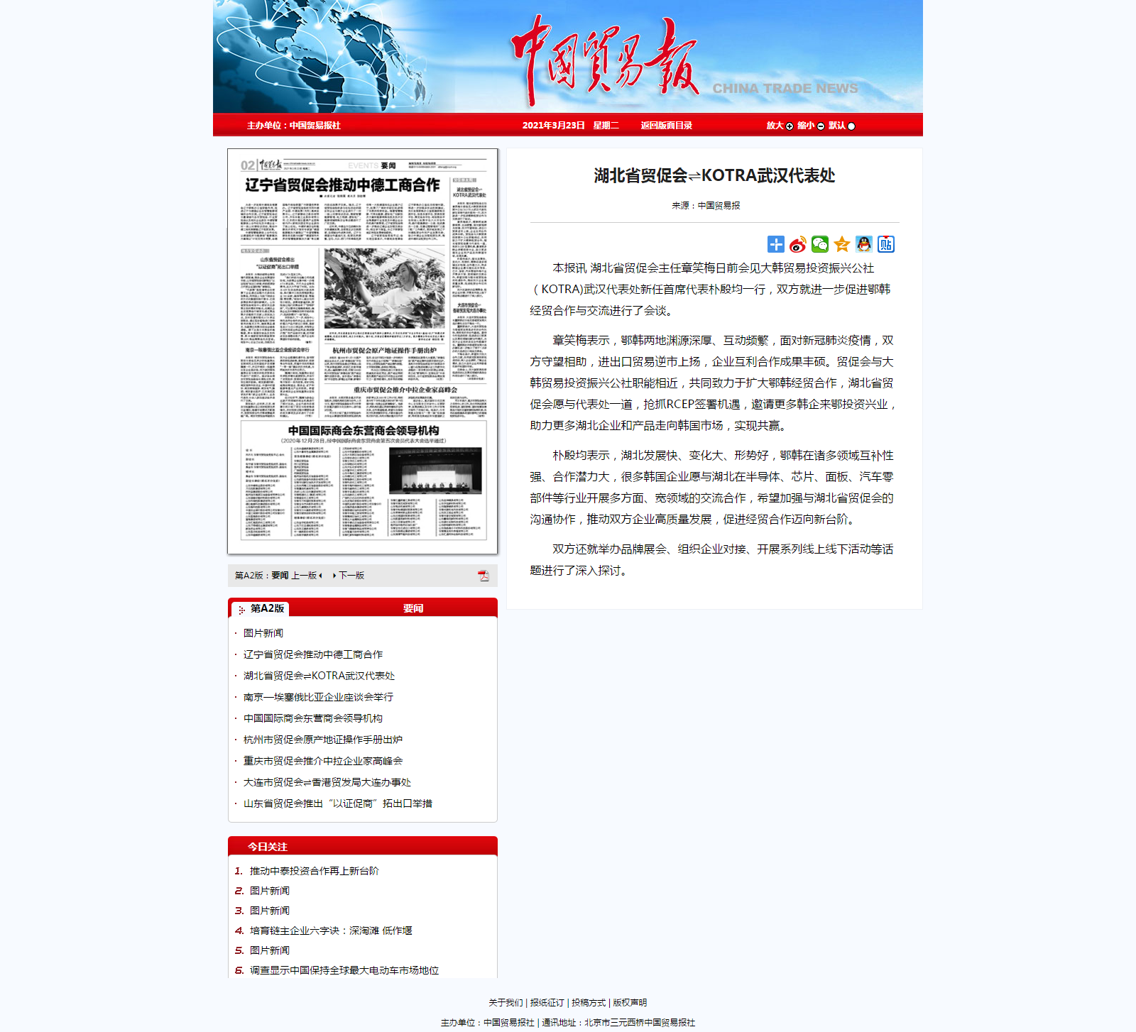 中国贸易报:湖北省贸促会⇌KOTRA武汉代表处