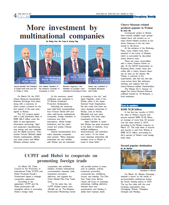 长江周刊:CCPIT and Hubei to cooperate on promoting foreign trade