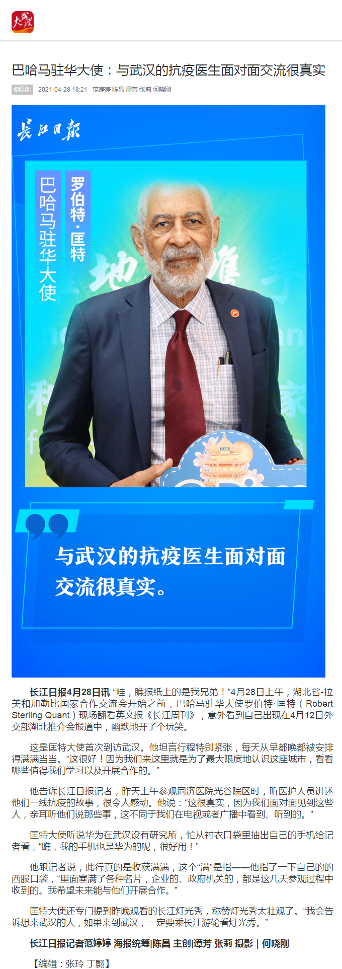 长江日报:巴哈马驻华大使:与武汉的抗疫医生面对面交流很真实