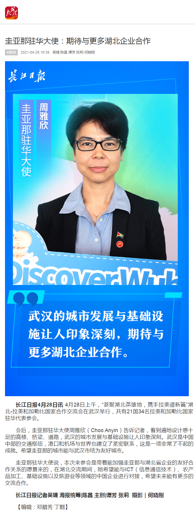 长江日报:圭亚那驻华大使:期待与更多湖北企业合作