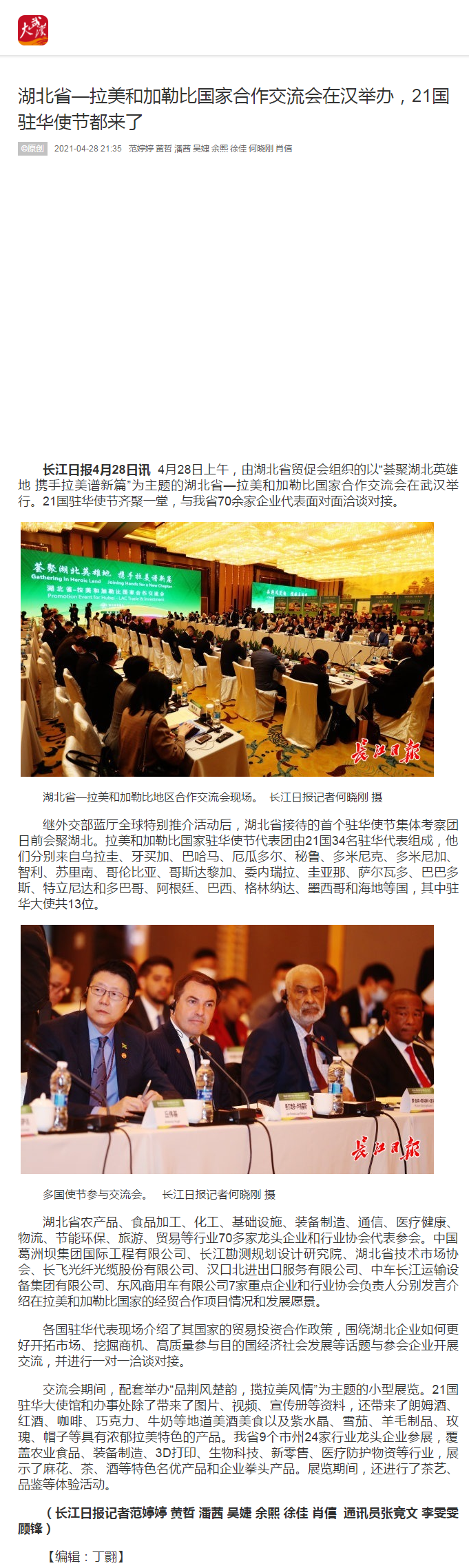 长江日报:湖北省—拉美和加勒比国家合作交流会在汉举办,21国驻华使节都来了