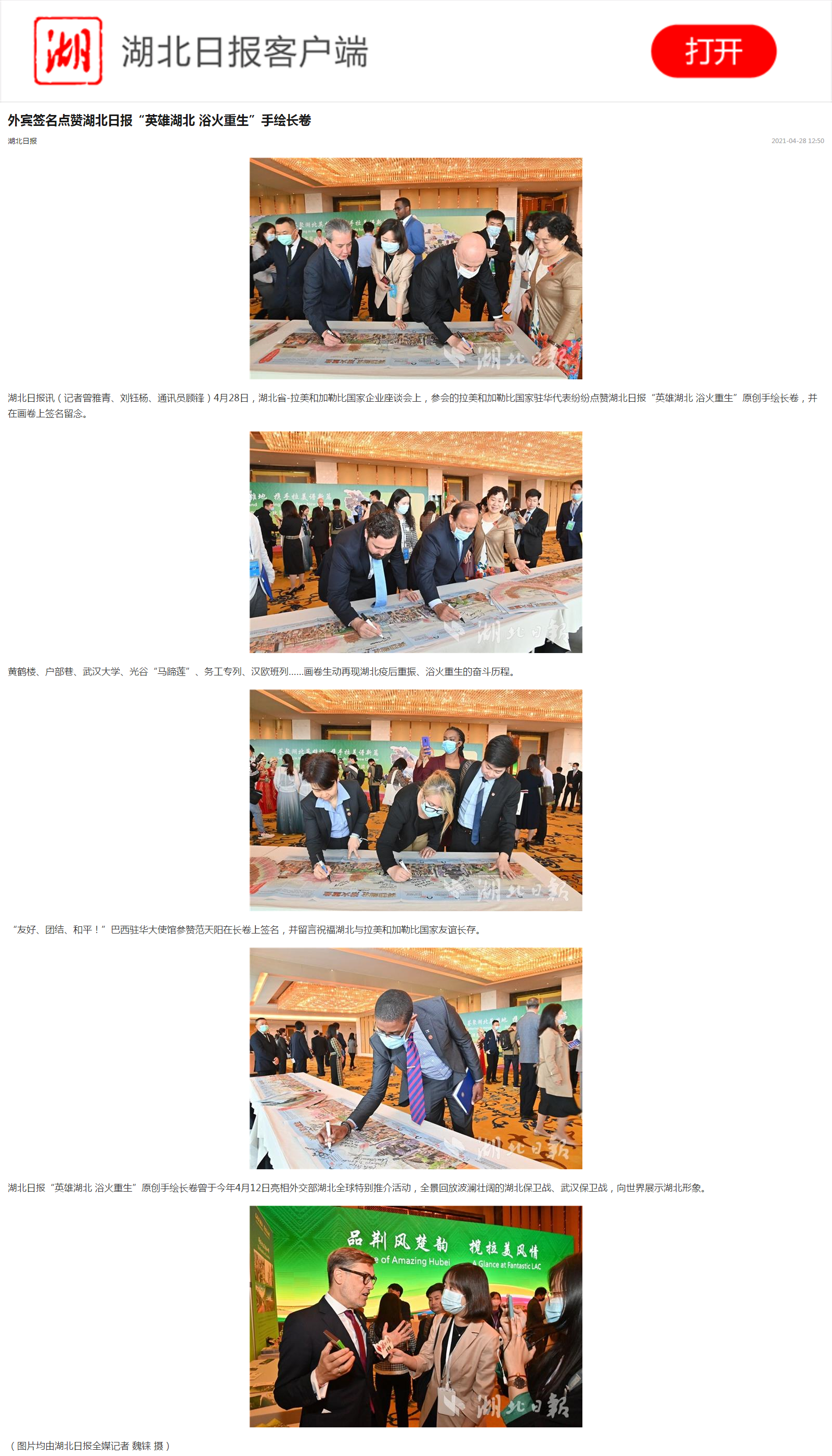 湖北日报:外宾签名点赞湖北日报“英雄湖北 浴火重生”手绘长卷