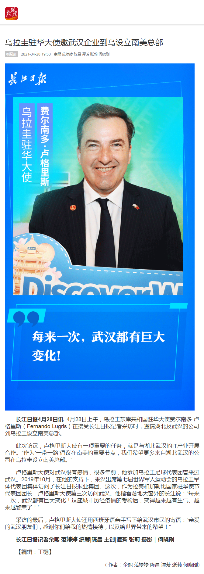 长江日报:乌拉圭驻华大使邀武汉企业到乌设立南美总部
