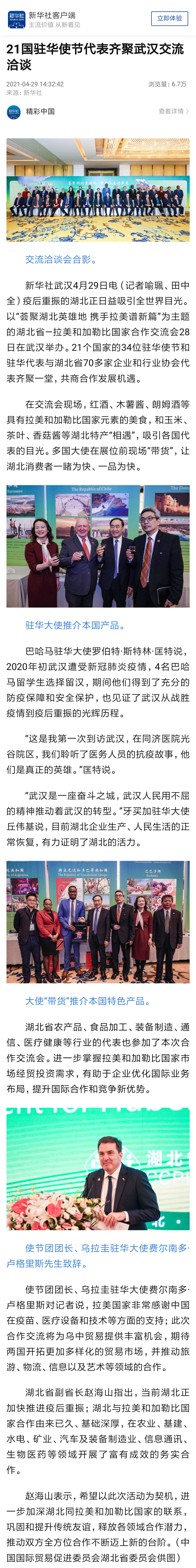 新华社:21国驻华使节代表齐聚武汉交流洽谈