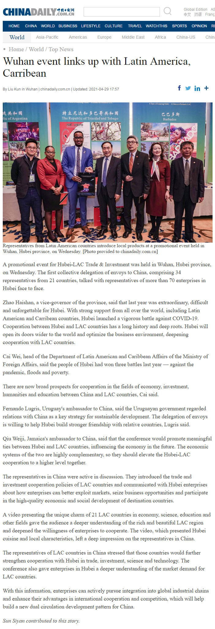 中国日报:Wuhan event links up with Latin America, Carribean