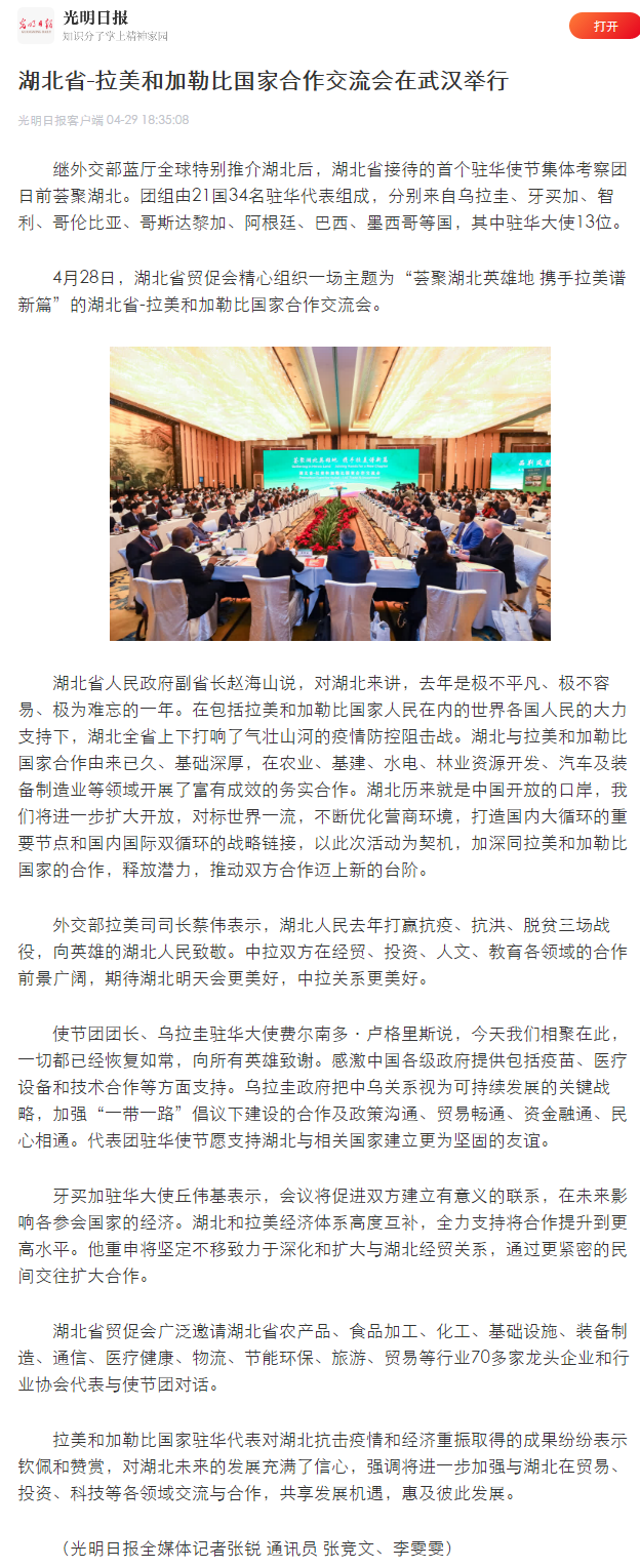 光明日报:湖北省-拉美和加勒比国家合作交流会在武汉举行