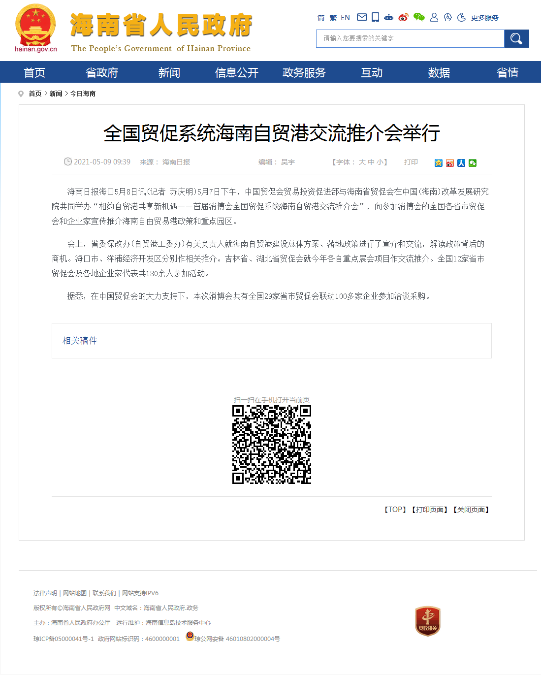 海南省政府网:全国贸促系统海南自贸港交流推介会举行