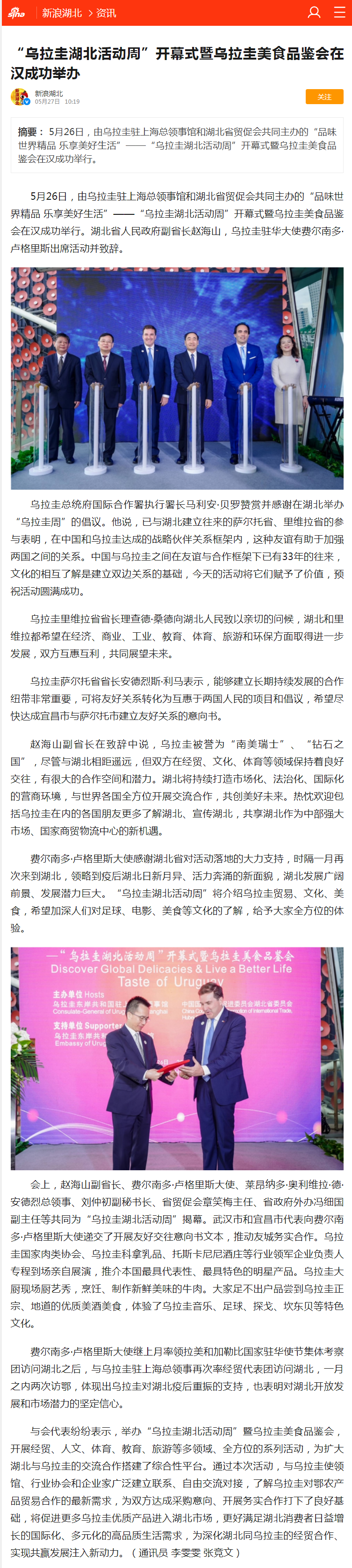 新浪网:“乌拉圭湖北活动周”开幕式暨乌拉圭美食品鉴会在汉成功举办