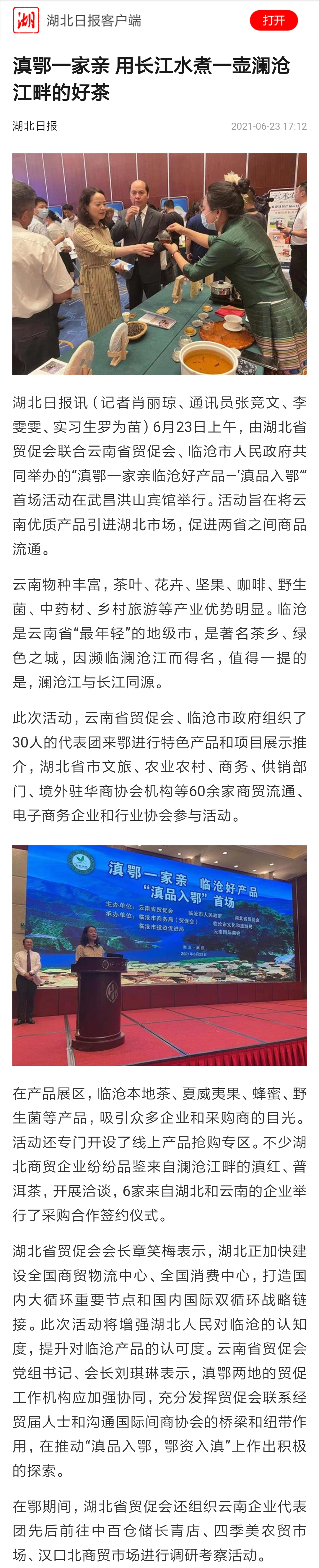湖北日报:滇鄂一家亲 用长江水煮一壶澜沧江畔的好茶