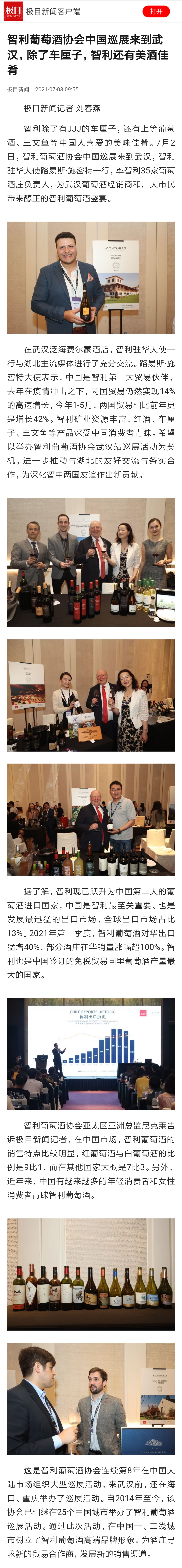 楚天都市报:智利葡萄酒协会中国巡展来到武汉,除了车厘子,智利还有美酒佳肴