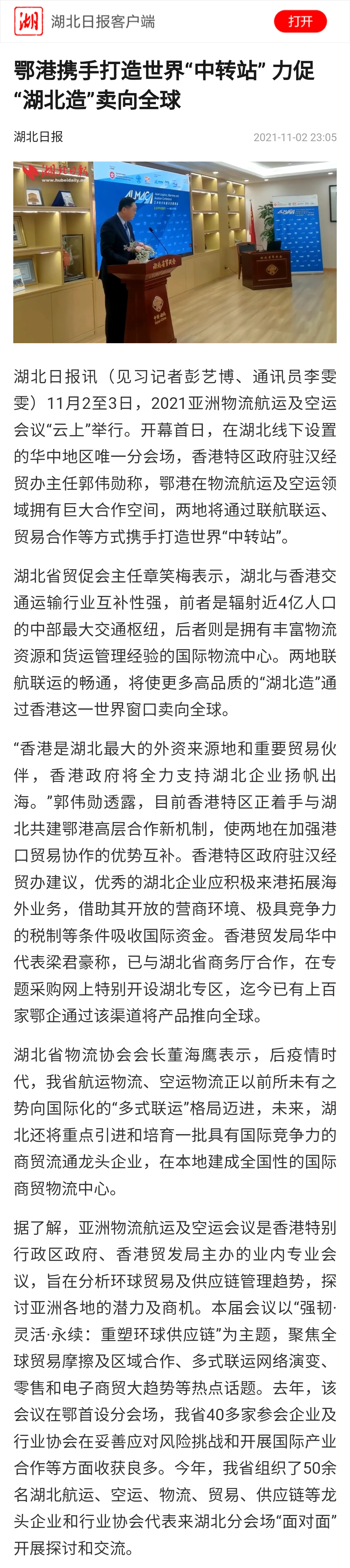 湖北日报:鄂港携手打造世界“中转站” 力促“湖北造”卖向全球