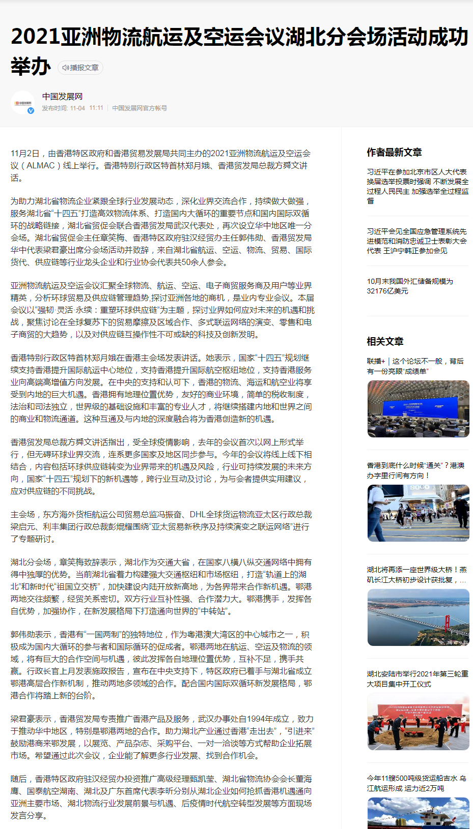 中国经济导报:2021亚洲物流航运及空运会议湖北分会场活动成功举办