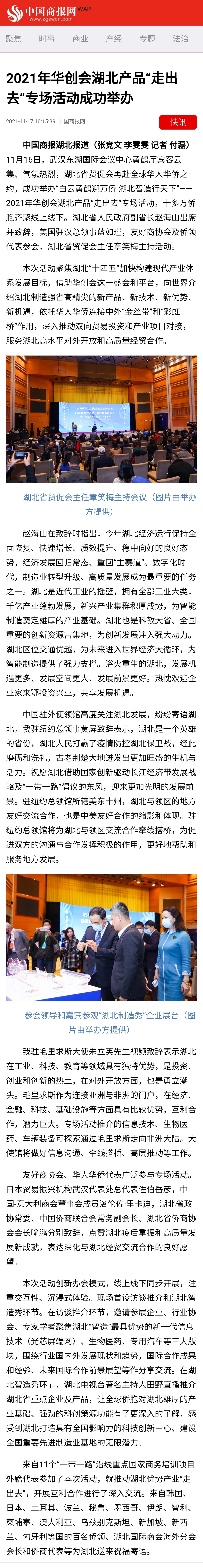 中国商报:2021年华创会湖北产品“走出去” 专场活动成功举办