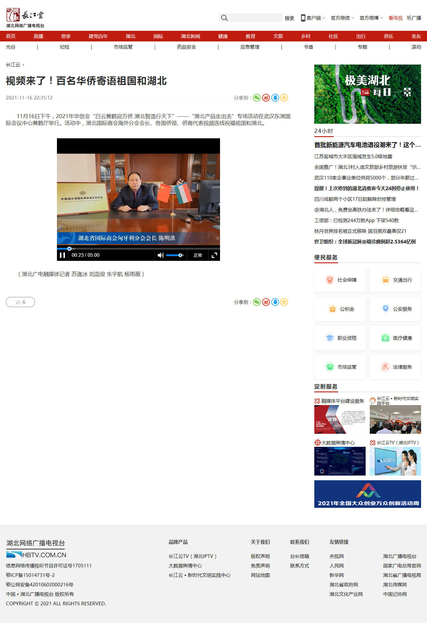 湖北广播电视台:视频来了!百名华侨寄语祖国和湖北