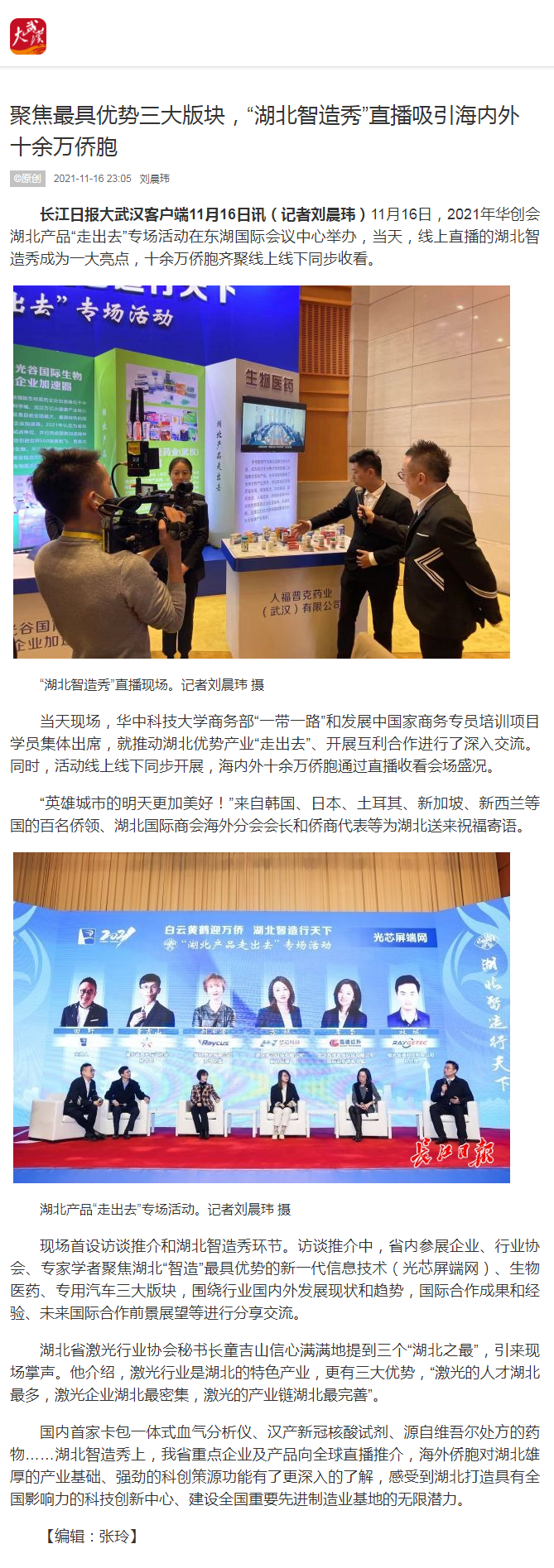 长江日报:聚焦最具优势三大版块,“湖北智造秀”直播吸引海内外十余万侨胞