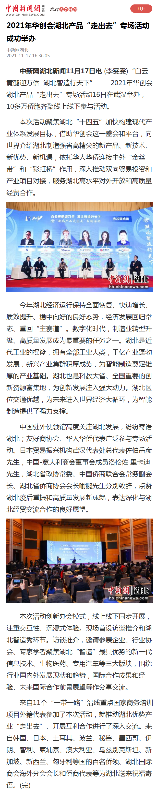 中国新闻网:2021年华创会湖北产品“走出去”专场活动成功举办