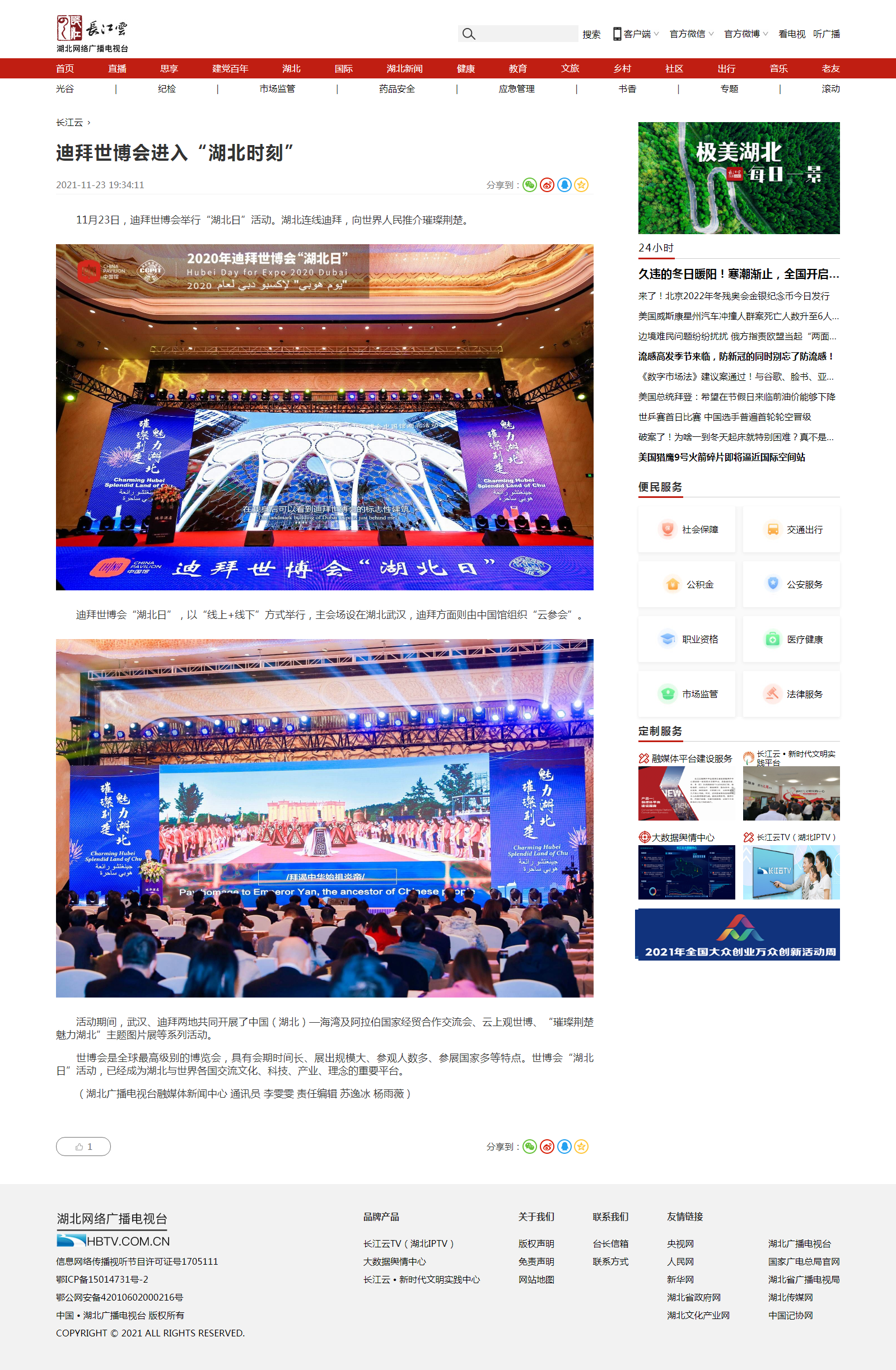 湖北广播电视台:迪拜世博会进入“湖北时刻”
