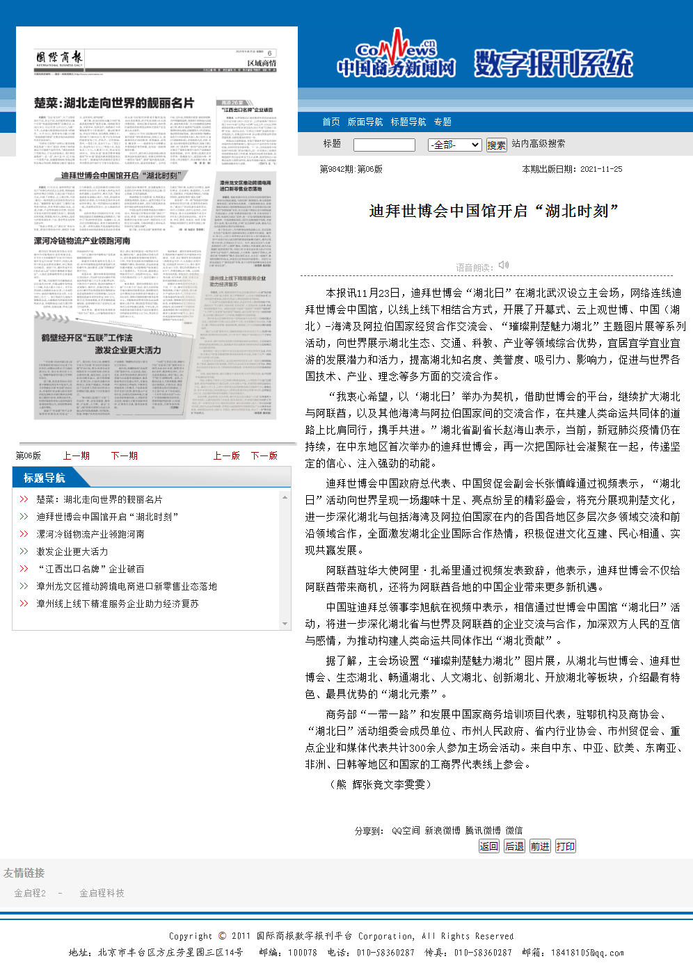 国际商报:迪拜世博会中国馆开启“湖北时刻”