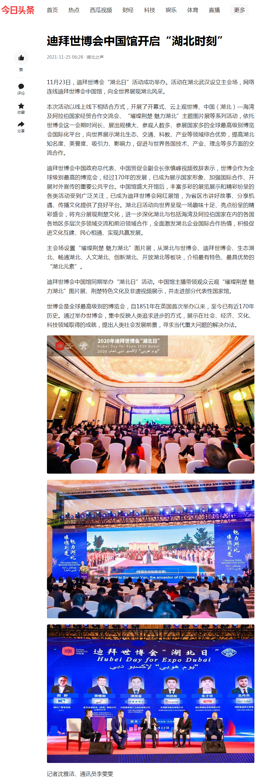 湖北之声:迪拜世博会中国馆开启“湖北时刻”湖北之声