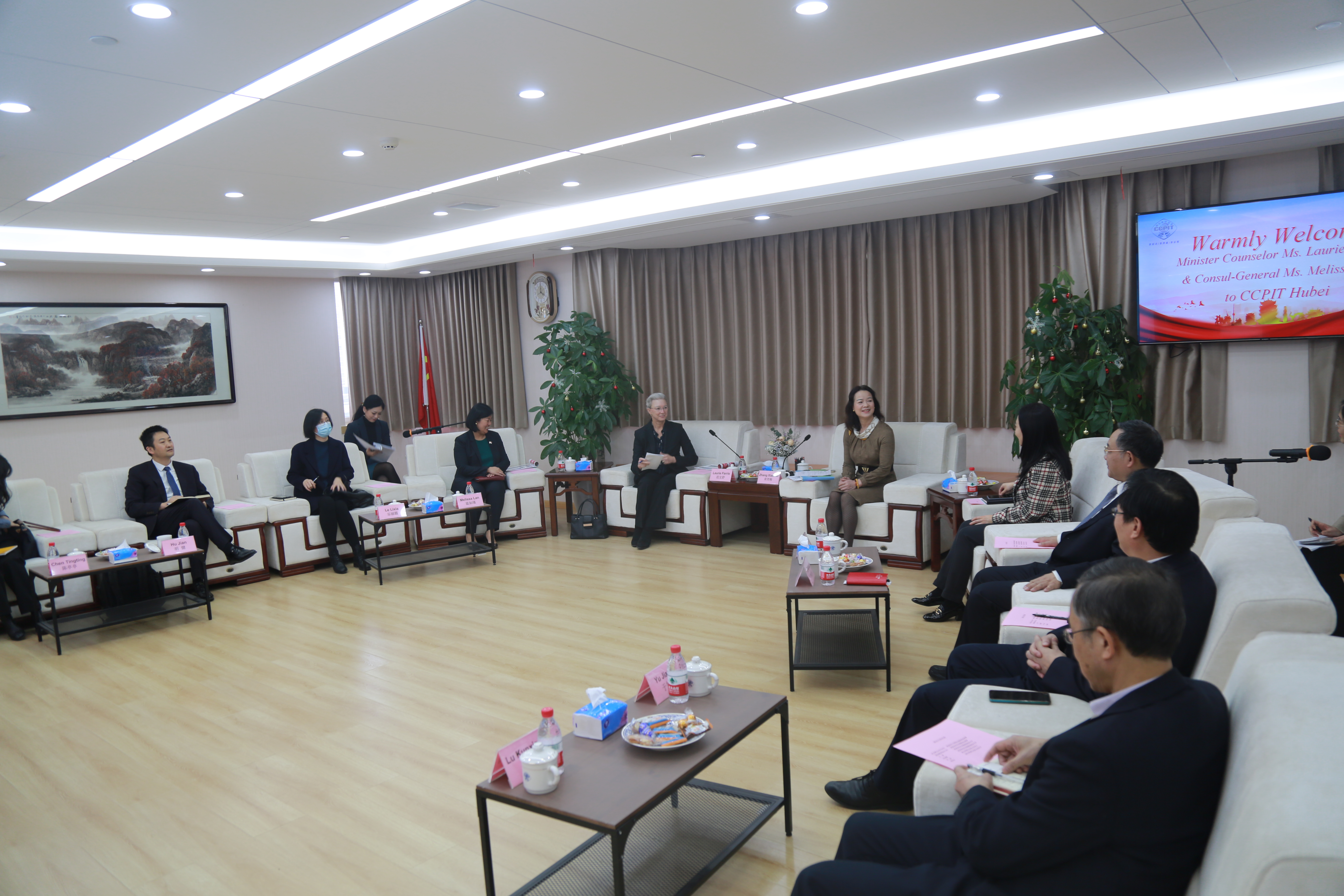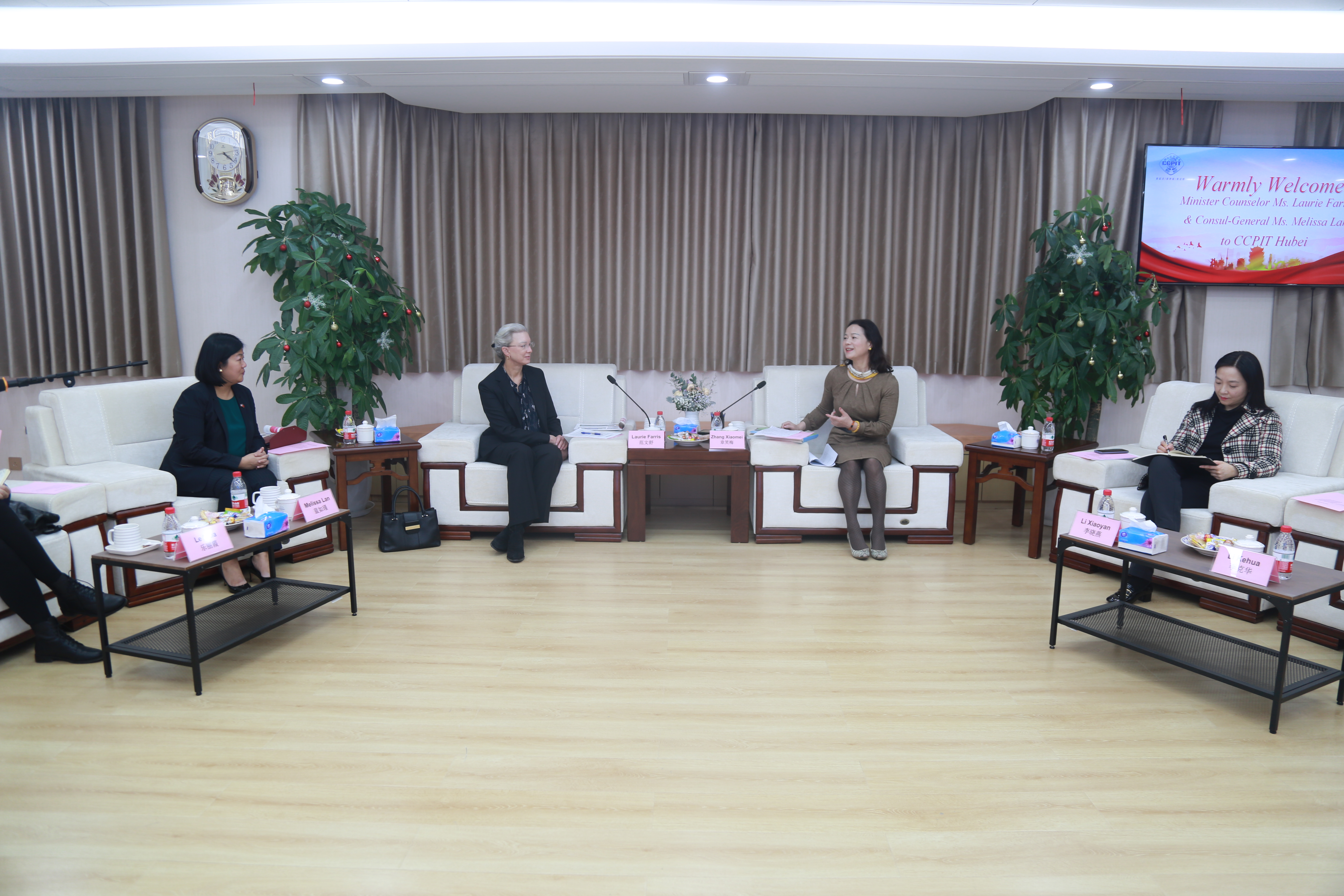12月6日下午,章笑梅主任与到访的美国驻华大使馆公使衔商务参赞范文舒(Laurie Farris)、美国驻武汉总领馆总领事蓝如瑾(Melissa Lan)一行举行了工作会谈。