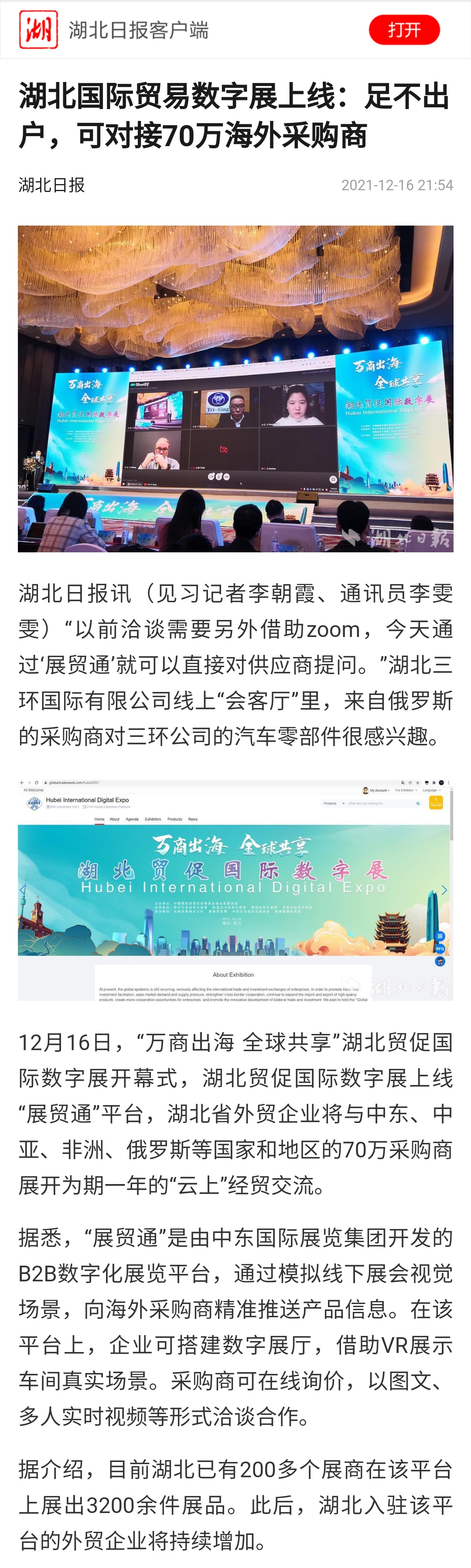 湖北日报:湖北国际贸易数字展上线:足不出户,可对接70万海外采购商