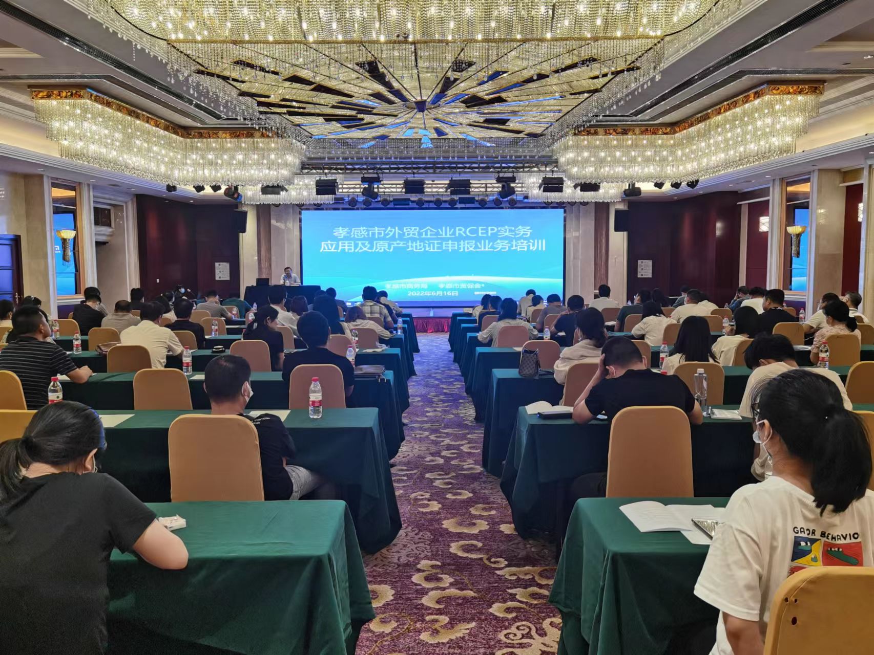6月16日,省贸促会法律事务部工作人员赴孝感市,帮助孝感市贸促会建立和完善原产地证明书签证系统,提升服务能力,在“孝感市外贸企业RCEP实务培训应用及原产地证申报业务培训班”上就“原产地证明书和国际商事证明书认证实务”、“如何利用RCEP优惠规则”、“国际商事纠纷的预防与解决”等课题给参会企业进行授课。这是我会落实国务院关于推动外贸保稳提质的意见,开展“下基层、察民情、解民忧、暖民心”实践活动,主动服务外贸、外资企业的重要活动之一。来自孝感市90多家企业和商务管理部门160多人参加了培训。
