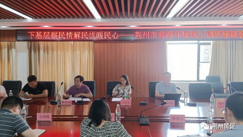 为配合做好全省《2021年度湖北省营商环境调研报告》课题研究工作,结合党员干部下基层察民情解民忧暖民心实践活动,6月15日下午,市贸促会特邀请中国贸促会研究院、省贸促会走进基层、贴近企业,倾听企业呼声、了解企业诉求、解答企业困惑,同步举办了一场线上线下荆州营商环境专场调研活动。
