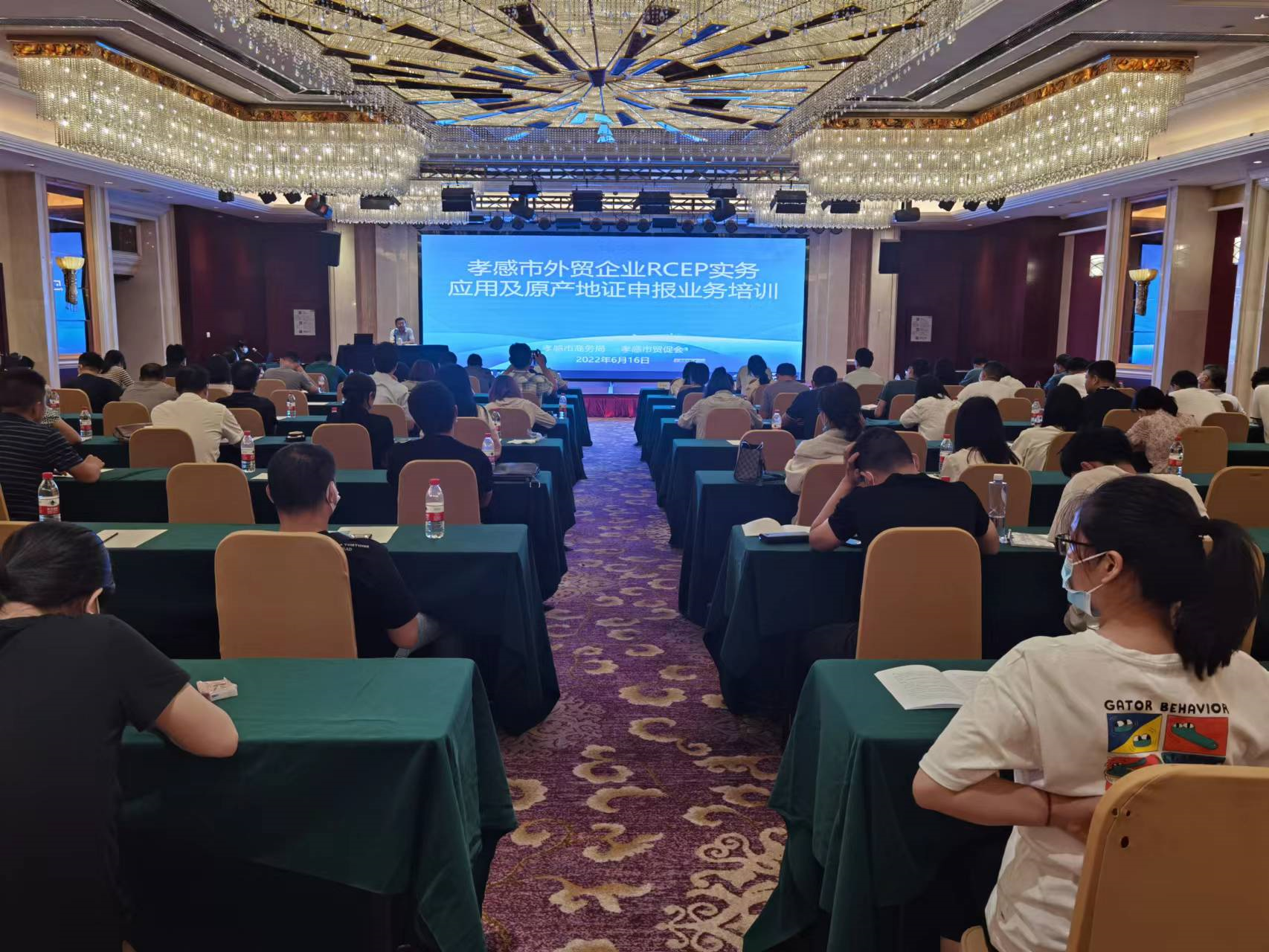 6月16日,市贸促会联合市商务局、市外综服举办孝感市外贸企业RCEP实务应用及原产地证申报业务培训,这是《区域全面经济伙伴关系协定》(RCEP)生效实施以来我市组织的首次大规模专题业务培训,全市商务部门及外贸企业共计110余人参加本次培训。