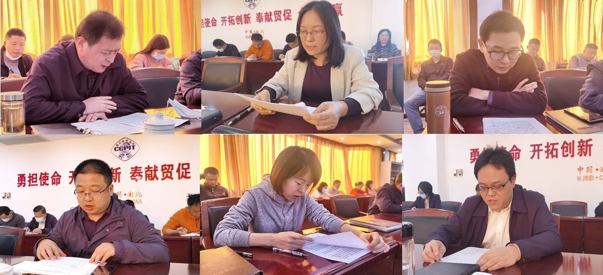 全会人员集中观看学习了省委书记王蒙徽、省长王忠林、省纪委书记侯淅珉和权威专家在全省市厅级主要领导干部专题培训班所作的专题报告视频。大家一致认为省委领导和专家们的系列专题辅导站位高远、主题鲜明、内容丰富,具有很强的指导意义,使大家受益匪浅。办公室雷强、人事教育部李双、对外联络部项菲、会务信息部于加珠、国际展览部陈高亮、法律事务部张晶等6名同志,围绕参训心得体会,结合贸促工作实际,作了交流发言。