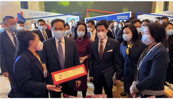 同期举办的“楚风韩韵”展览展示活动中,我会开辟“荆楚精品”专题板块进行特色产品展示,获得与会中外嘉宾的一致好评。