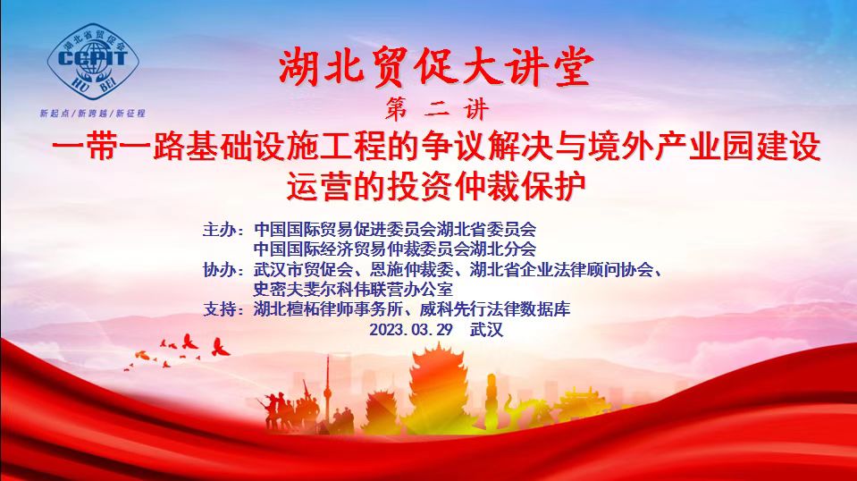 聚焦“一带一路基础设施工程的争议解决与境外产业园建设运营的投资仲裁保护” “湖北贸促大讲堂”第二讲成功举办