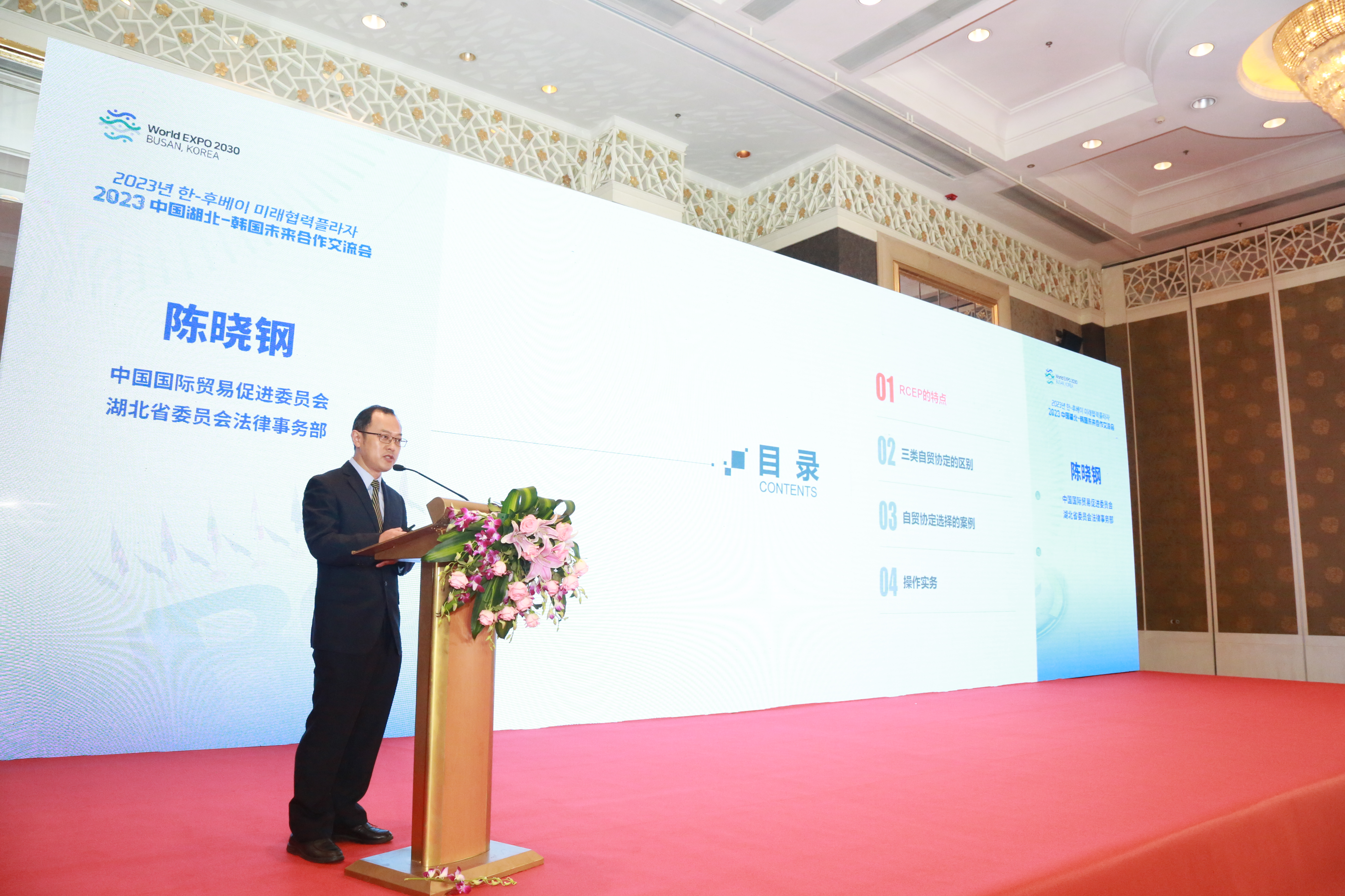 6月7日,由我会协办的2023中国-韩国未来合作交流会在武汉开幕,李晓燕副主任出席。RCEP背景下中韩经贸合作新机遇是本次交流会的重点。来自中韩两国的专家就《RCEP签署给中韩商贸带来的机会》、《RCEP背景下中韩经贸机遇与挑战》、《RCEP政策下以中国长江中游为中心的中韩多式联运物流合作的启示》等主题进行了分享,我会法律事务部陈晓钢以《RCEP关税适用企业案例》为题,从实操的角度向到会中韩企业代表进行专题介绍。中韩双方近百位企业代表现场参加活动。