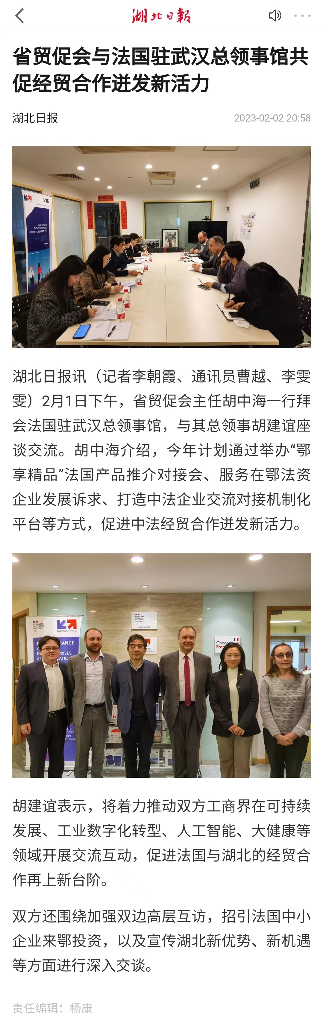湖北日报:省贸促会与法国驻武汉总领事馆共促经贸合作迸发新活力