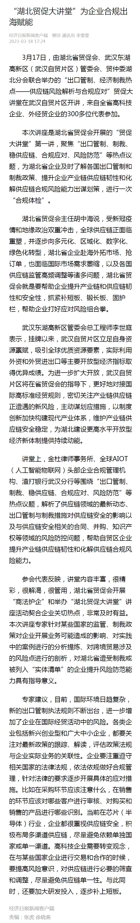 经济日报 :“湖北贸促大讲堂”为企业合规出海赋能