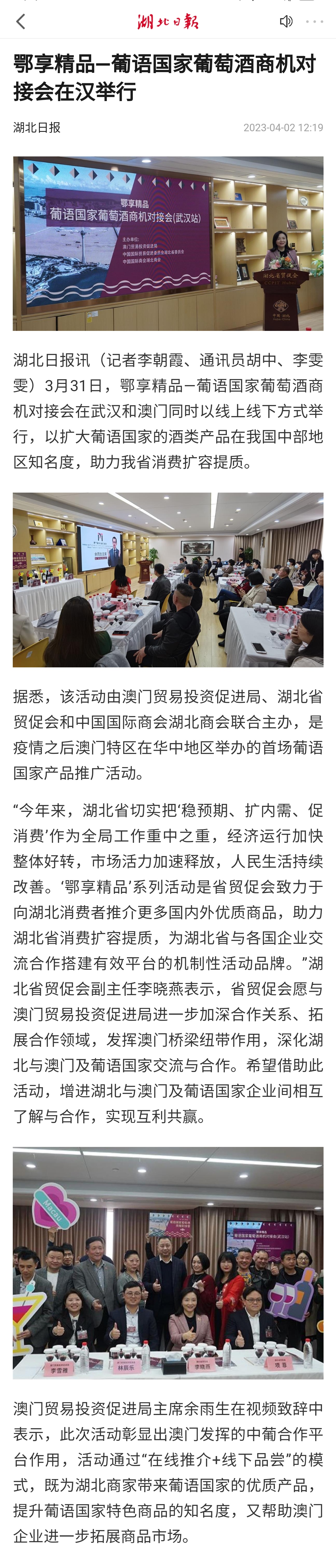 湖北日报:鄂享精品—葡语国家葡萄酒商机对接会在汉举行
