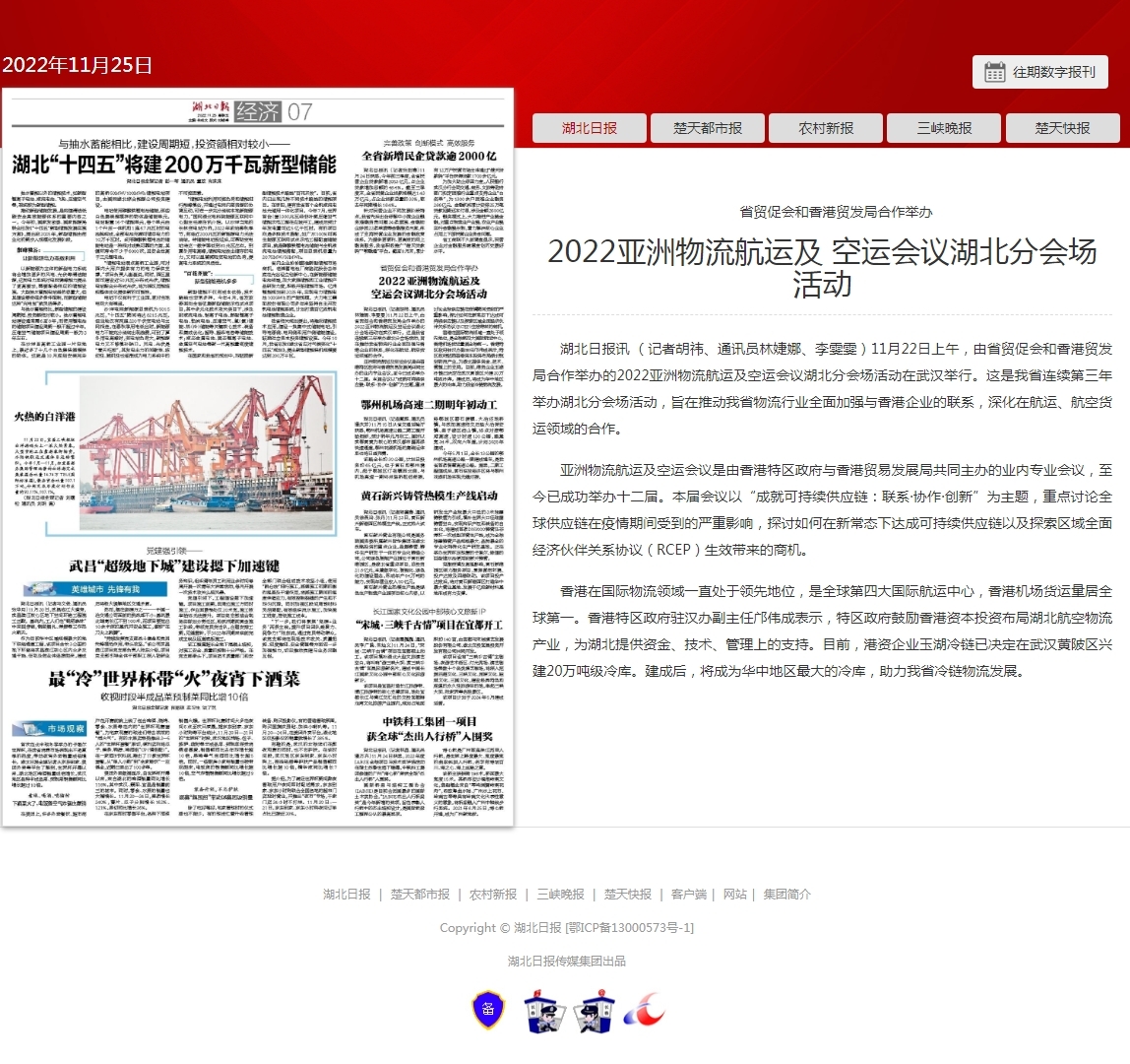 湖北日报:2022亚洲物流航运及 空运会议湖北分会场活动