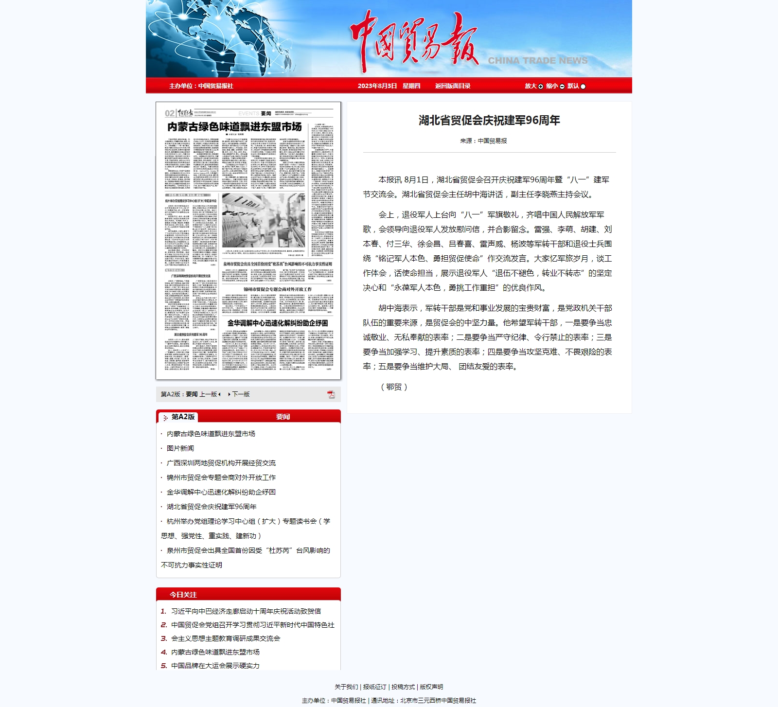 中国贸易报:湖北省贸促会庆祝建军96周年