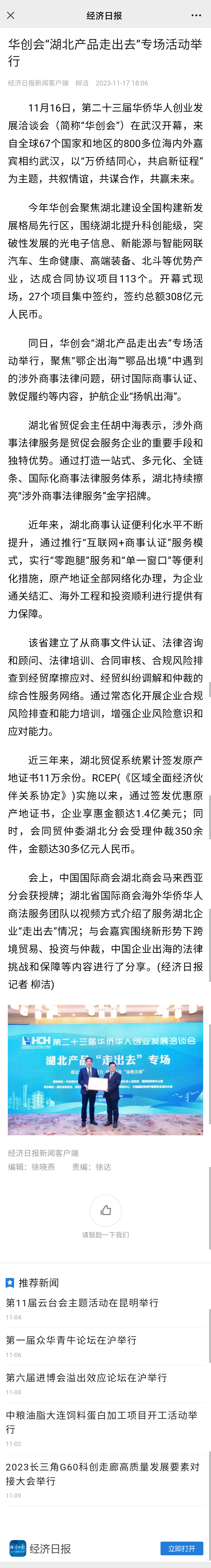 经济日报:华创会“湖北产品走出去”专场活动举行