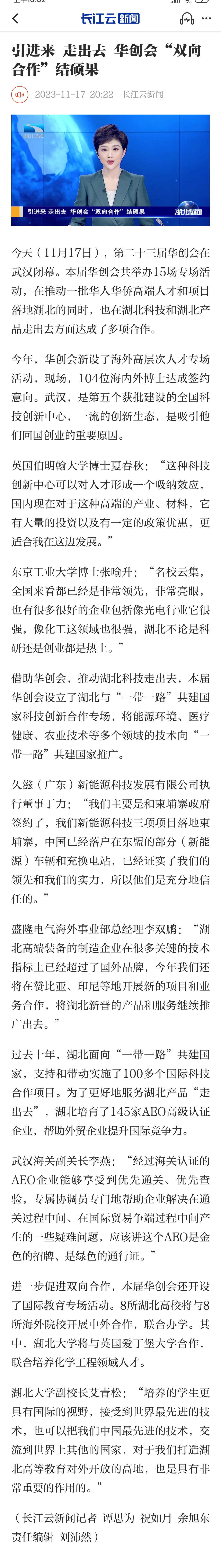 湖北卫视:引进来 走出去 华创会“双向合作”结硕果